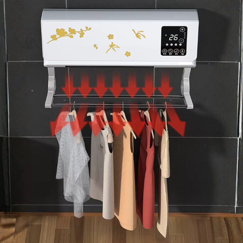 Incluye barra para colgar prendas → el aire caliente cae directo sobre la ropa.